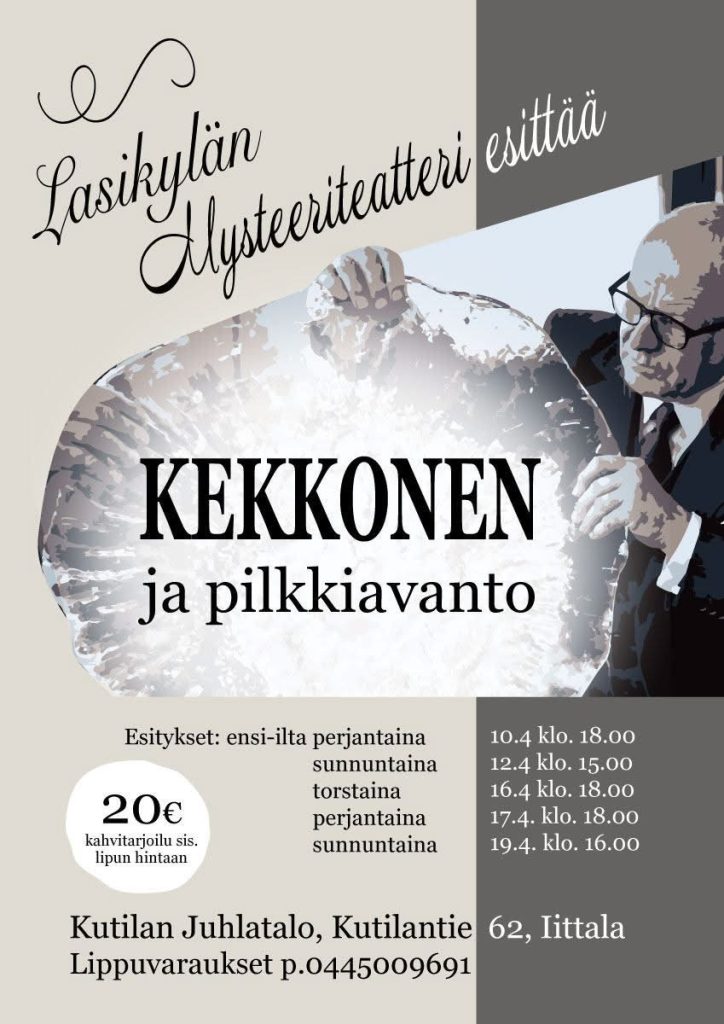 tiedote: Lasikylän Mysteeriteatteri, Kekkonen palaa huhtikuussa Iittalaan