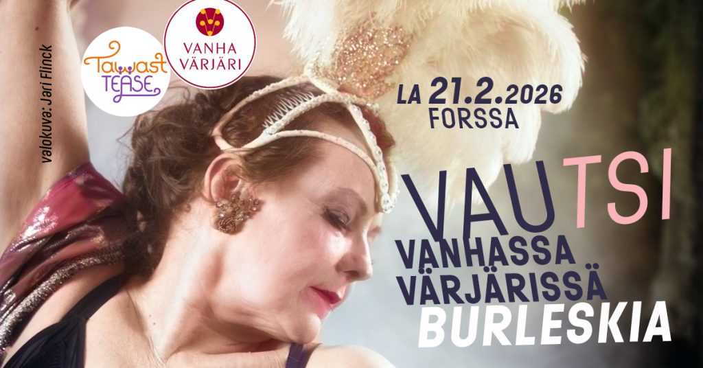 Forssan Vanha Värjäri täyttyy kimalluksesta, tarinoista ja hurmaavasta esiintymisestä lauantaina 21.2.2026, kun VAUTSI – Vanhassa Värjärissä Burleskia – tapahtuma kutsuu yleisön viettämään unohtumatonta iltaa burleskitaiteen parissa. Luvassa on näyttäviä numeroita, leikkisää viettelyä ja tunnelmaa, joka saa arjen unohtumaan, juuri sopivasti talven taitteessa.